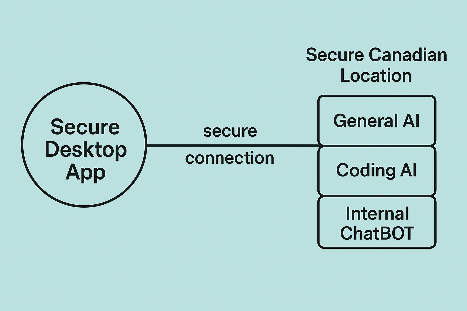 The front end of our toolkit is a simple desktop app that your staff and employees can install on their PC. The app connects securely to our AI servers, and only our AI servers. Your data and privacy is assured.